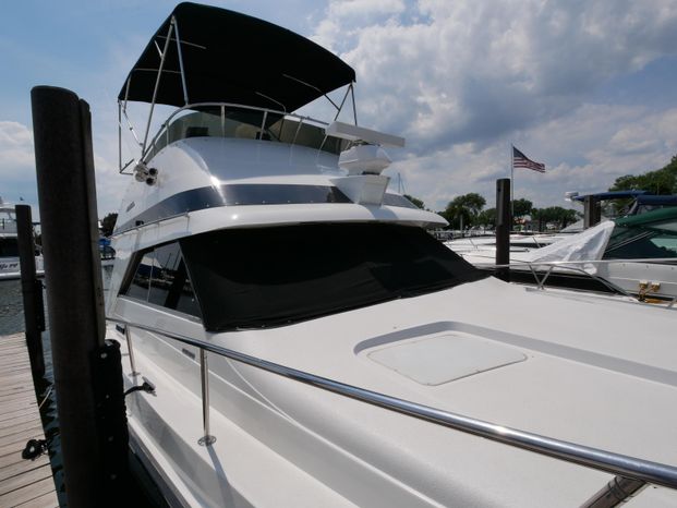 Freshwater / Great Lakes boat since new this vessel features Twin Crusader 454-cid 350-hp Gas Engine's (Electronic Ignitions) with only 644 original hours reported by seller. Notable features include but are not limited to the following: Air Conditioning & Heat (1 Unit), Sleeping Accommodations for Six, Head (Vacuflush) w/Vanity/Sink/Shower, Totally Updated and Tastefully Redecorated Cabin Interior (Carpeting, Window Treatments, Furniture, Lighting, etc.), Electronics Package including Raymarine Raychart RC-520 GPS/Chartplotter, Lowrance LVR-250 VHF Marine Radio, Ritchie Marine Compass, Datamarine LX201 Depth Sounder, Datamarine LX50 Speed Log, 50-in. Visio Flat Screen TV, Premium Stereo System w/CD-Player, Newer Bimini Top Cockpit Shade and MUCH more!