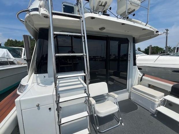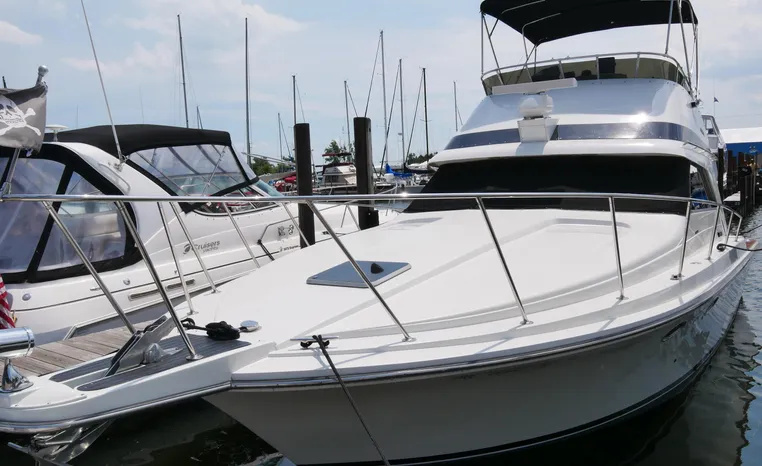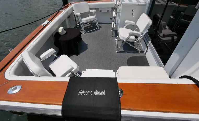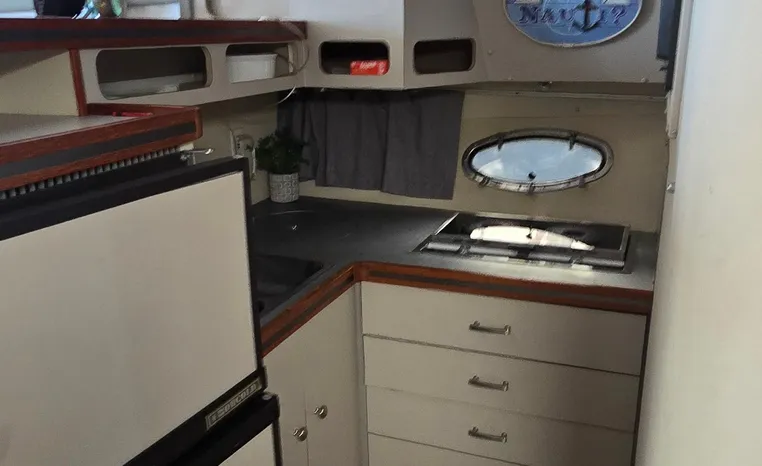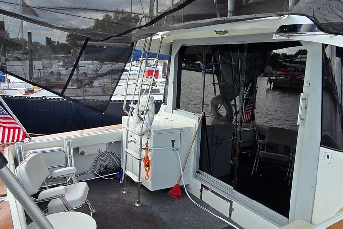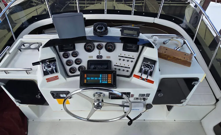 Stretched version of Trojan's earlier 10 Meter Sedan (1982 to 1989) boasts larger cockpit, increased fuel capacity. Standard single-stateroom interior with expansive salon was updated in 1989 to include a stall shower in the head -- A modification that took some elbow space out of the bow stateroom. Two-stateroom floorplan also became available in 1989. Standard 350hp gas engines cruise at 17-18 knots and reach a top speed in the mid 20s.