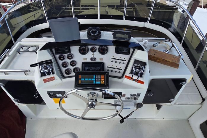 Freshwater / Great Lakes boat since new this vessel features Twin Crusader 454-cid 350-hp Gas Engine's (Electronic Ignitions) with only 644 original hours reported by seller. Notable features include but are not limited to the following: Air Conditioning & Heat (1 Unit), Sleeping Accommodations for Six, Head (Vacuflush) w/Vanity/Sink/Shower, Totally Updated and Tastefully Redecorated Cabin Interior (Carpeting, Window Treatments, Furniture, Lighting, etc.), Electronics Package including Raymarine Raychart RC-520 GPS/Chartplotter, Lowrance LVR-250 VHF Marine Radio, Ritchie Marine Compass, Datamarine LX201 Depth Sounder, Datamarine LX50 Speed Log, 50-in. Visio Flat Screen TV, Premium Stereo System w/CD-Player, Newer Bimini Top Cockpit Shade and MUCH more!
