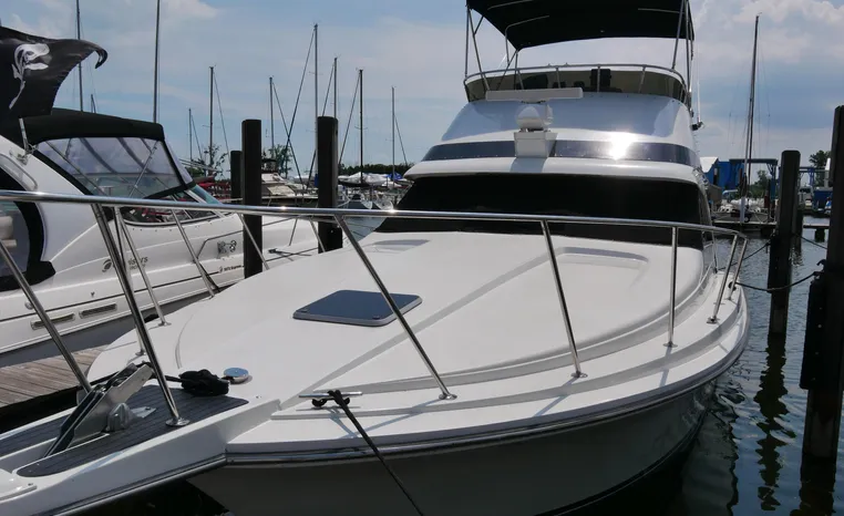 Freshwater / Great Lakes boat since new this vessel features Twin Crusader 454-cid 350-hp Gas Engine's (Electronic Ignitions) with only 644 original hours reported by seller. Notable features include but are not limited to the following: Air Conditioning & Heat (1 Unit), Sleeping Accommodations for Six, Head (Vacuflush) w/Vanity/Sink/Shower, Totally Updated and Tastefully Redecorated Cabin Interior (Carpeting, Window Treatments, Furniture, Lighting, etc.), Electronics Package including Raymarine Raychart RC-520 GPS/Chartplotter, Lowrance LVR-250 VHF Marine Radio, Ritchie Marine Compass, Datamarine LX201 Depth Sounder, Datamarine LX50 Speed Log, 50-in. Visio Flat Screen TV, Premium Stereo System w/CD-Player, Newer Bimini Top Cockpit Shade and MUCH more!