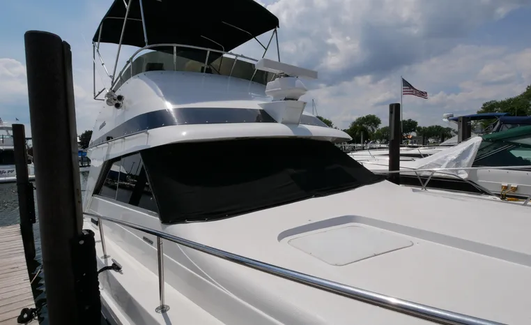 Freshwater / Great Lakes boat since new this vessel features Twin Crusader 454-cid 350-hp Gas Engine's (Electronic Ignitions) with only 644 original hours reported by seller. Notable features include but are not limited to the following: Air Conditioning & Heat (1 Unit), Sleeping Accommodations for Six, Head (Vacuflush) w/Vanity/Sink/Shower, Totally Updated and Tastefully Redecorated Cabin Interior (Carpeting, Window Treatments, Furniture, Lighting, etc.), Electronics Package including Raymarine Raychart RC-520 GPS/Chartplotter, Lowrance LVR-250 VHF Marine Radio, Ritchie Marine Compass, Datamarine LX201 Depth Sounder, Datamarine LX50 Speed Log, 50-in. Visio Flat Screen TV, Premium Stereo System w/CD-Player, Newer Bimini Top Cockpit Shade and MUCH more!