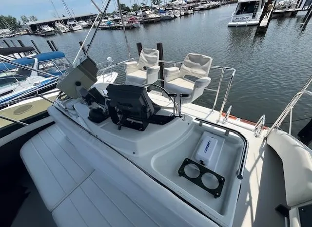Freshwater / Great Lakes boat since new this vessel features Twin Crusader 454-cid 350-hp Gas Engine's (Electronic Ignitions) with only 644 original hours reported by seller. Notable features include but are not limited to the following: Air Conditioning & Heat (1 Unit), Sleeping Accommodations for Six, Head (Vacuflush) w/Vanity/Sink/Shower, Totally Updated and Tastefully Redecorated Cabin Interior (Carpeting, Window Treatments, Furniture, Lighting, etc.), Electronics Package including Raymarine Raychart RC-520 GPS/Chartplotter, Lowrance LVR-250 VHF Marine Radio, Ritchie Marine Compass, Datamarine LX201 Depth Sounder, Datamarine LX50 Speed Log, 50-in. Visio Flat Screen TV, Premium Stereo System w/CD-Player, Newer Bimini Top Cockpit Shade and MUCH more!