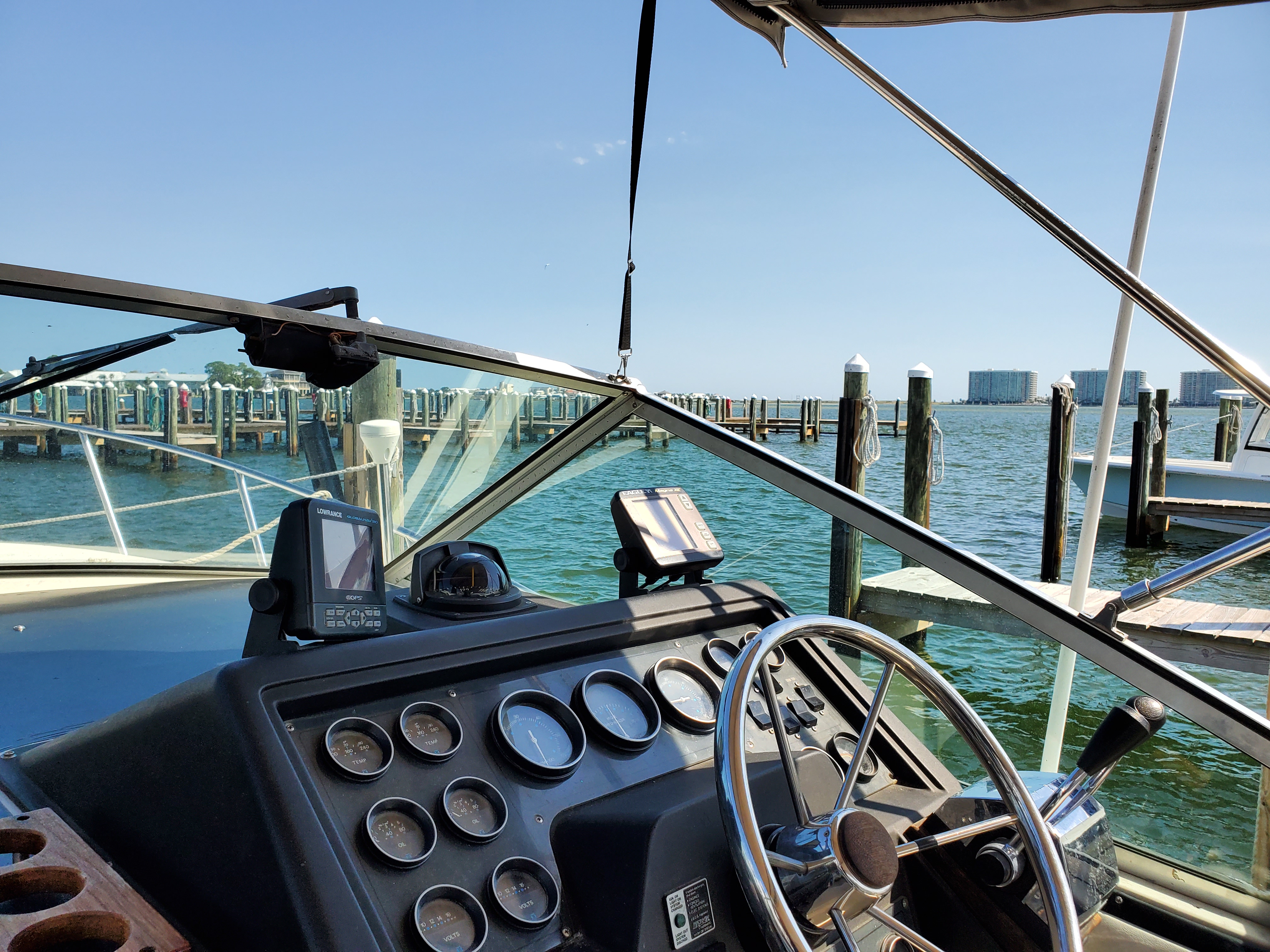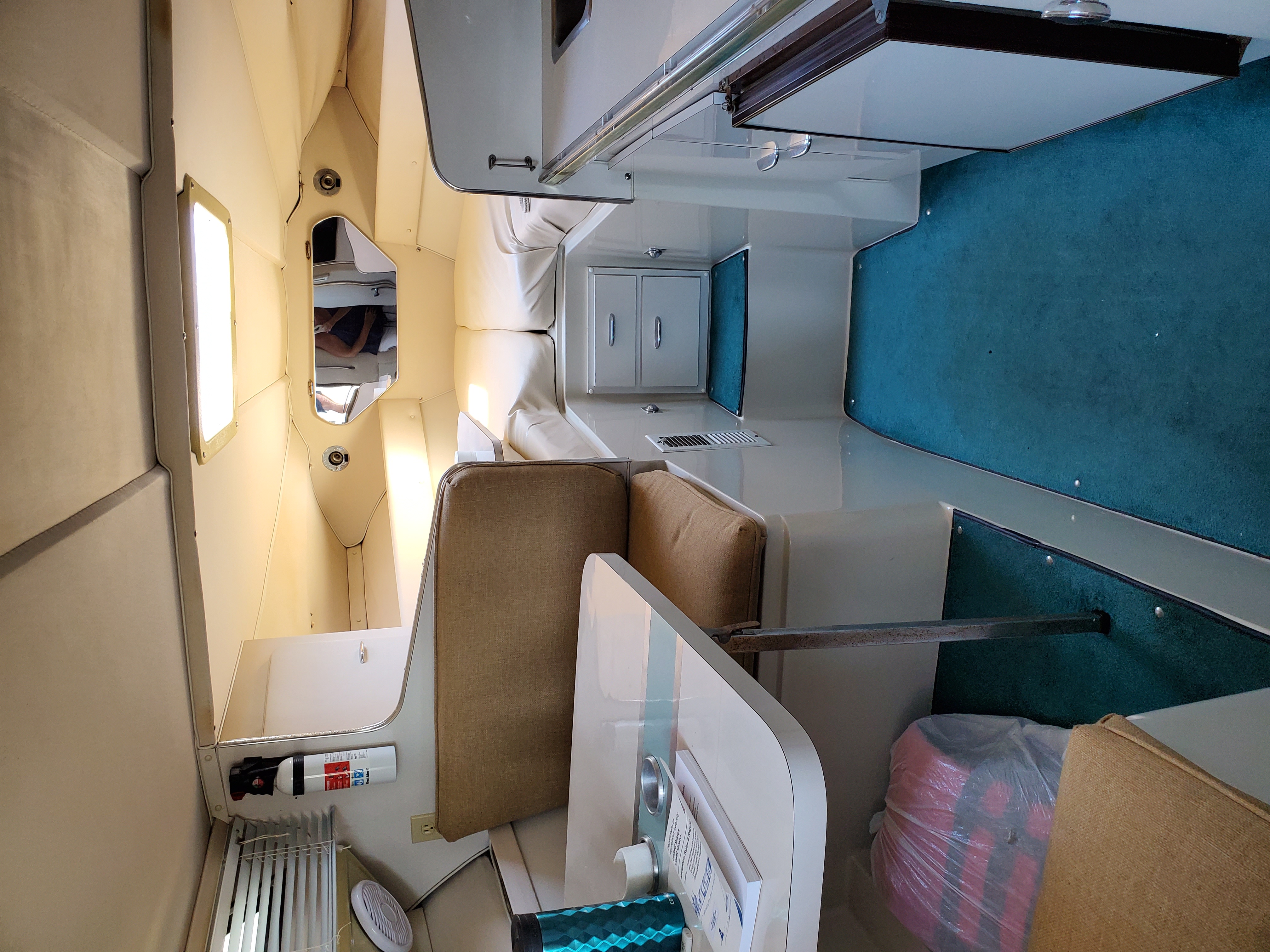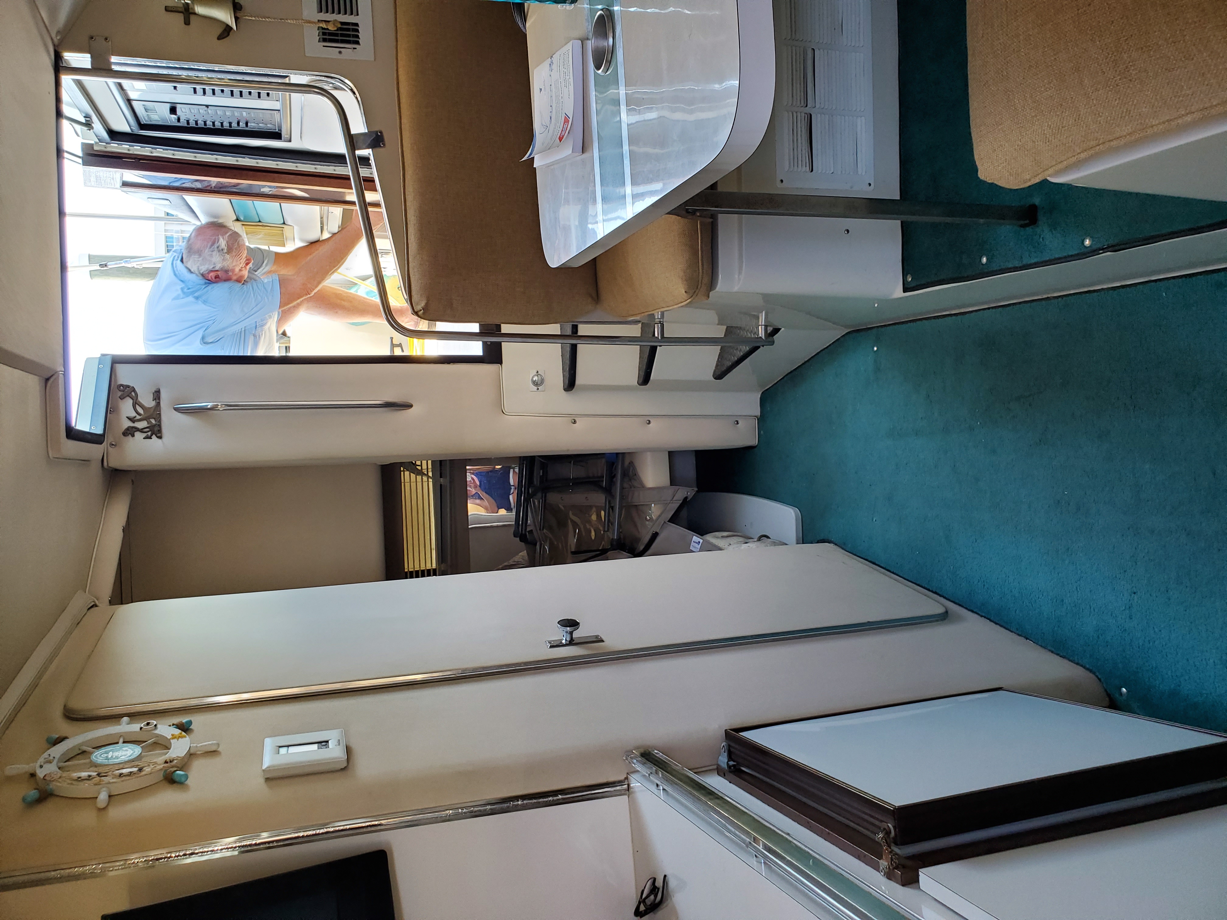 Twin 200 H.P. V-8's Alpha drives forward salon and aft bed walk-in bathroom and shower full galley no generator but does have ducted central heat and air. Dual Bimini tops and new camper canvass two rod holders near stern comes with triple axle aluminum trailer with six new wheels and tires. If you don't leave a message, you will not get a call back to many robo calls.