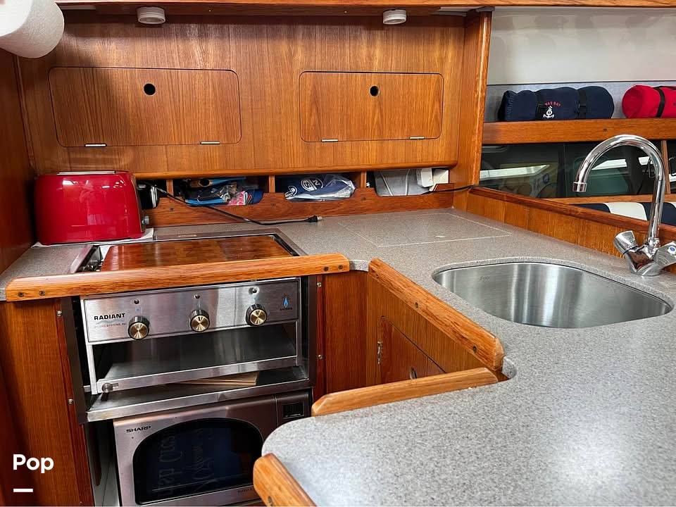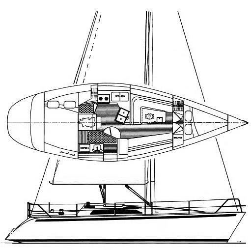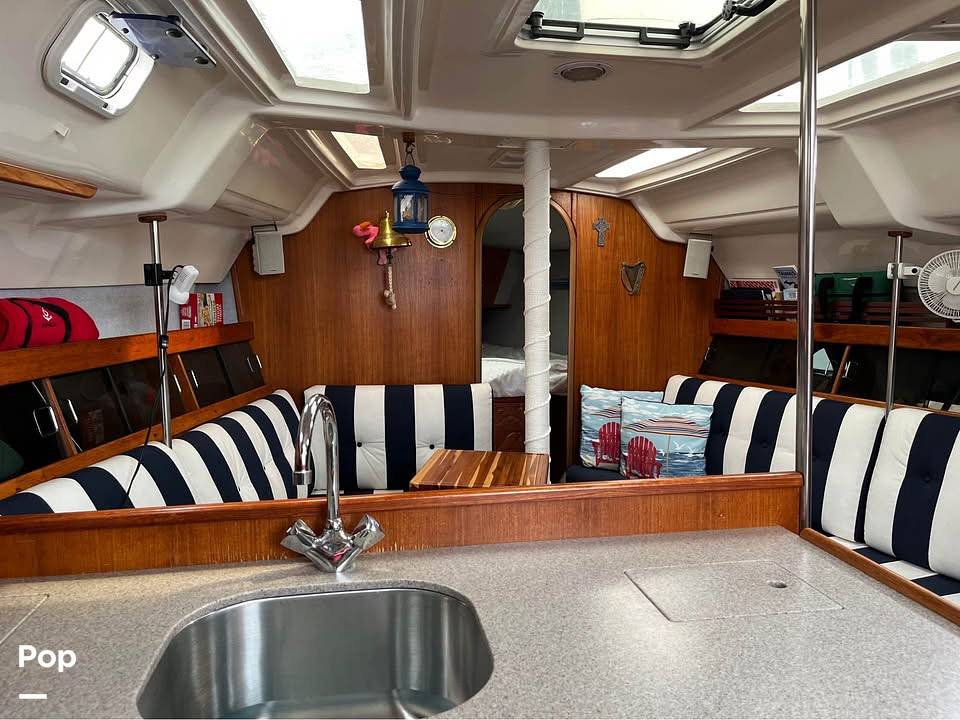 35.5 Cruiser equipped with an oversized folding steering wheel, VHF, auto helm, GPS, and battery charger. 2 cabins and 3 berths!