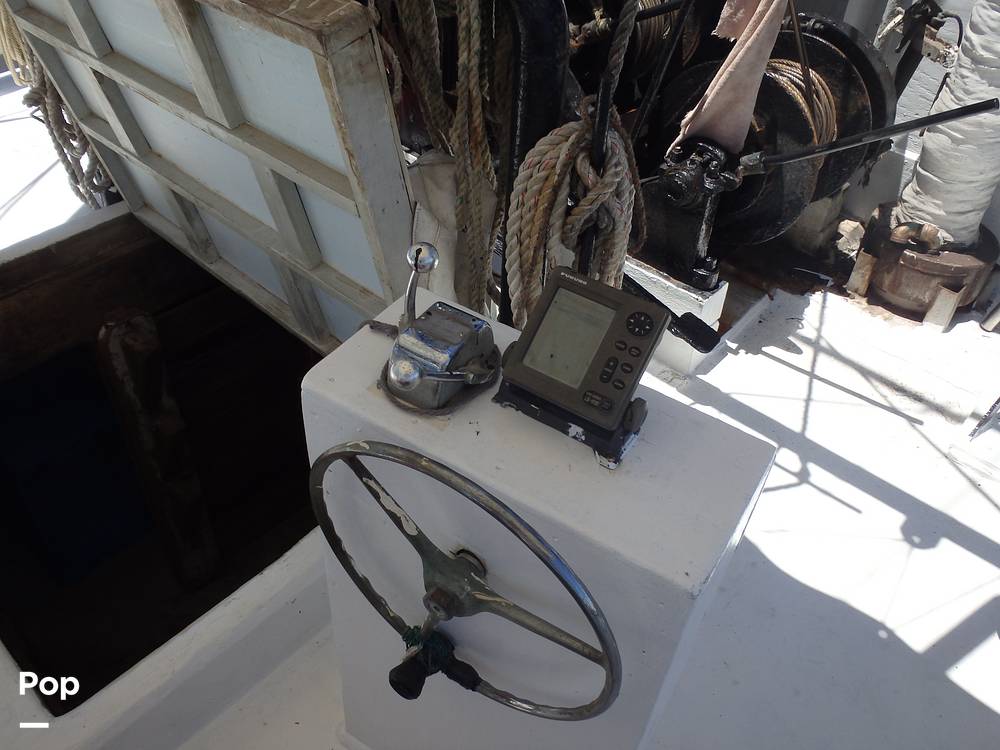 All wood vessel, durable and has spent many years proving its integrity. Also an overlay of fiberglass on the Starboard and Port sides along with Bow and Stern decking for lasting dependability.
