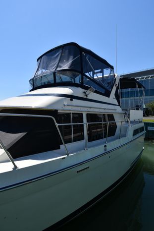 Freshwater / Great Lakes boat since new this vessel features Twin Crusader 454-cid 350-hp Gas Engine's with only 700 original hours. Notable features include but are not limited to the following: Air-Conditioning & Heat (2-Units), (2) Heads (Electric-Flush; Note Stall-Shower in Aft / Master Head), Westerbeke 6.5-kw Generator, NEW Custom Canvas Package (Convertible-Top w/Full Isin-Glass Enclosure on Fly-Bridge, Aft-Deck Convertible-Top, NEW Garmin 741XS (Color / TouchScreen) GPS/Chartplotter, and MUCH more!