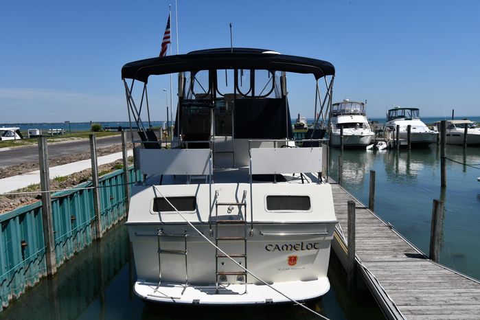 Freshwater / Great Lakes boat since new this vessel features Twin Crusader 454-cid 350-hp Gas Engine's with only 700 original hours. Notable features include but are not limited to the following: Air-Conditioning & Heat (2-Units), (2) Heads (Electric-Flush; Note Stall-Shower in Aft / Master Head), Westerbeke 6.5-kw Generator, NEW Custom Canvas Package (Convertible-Top w/Full Isin-Glass Enclosure on Fly-Bridge, Aft-Deck Convertible-Top, NEW Garmin 741XS (Color / TouchScreen) GPS/Chartplotter, and MUCH more!