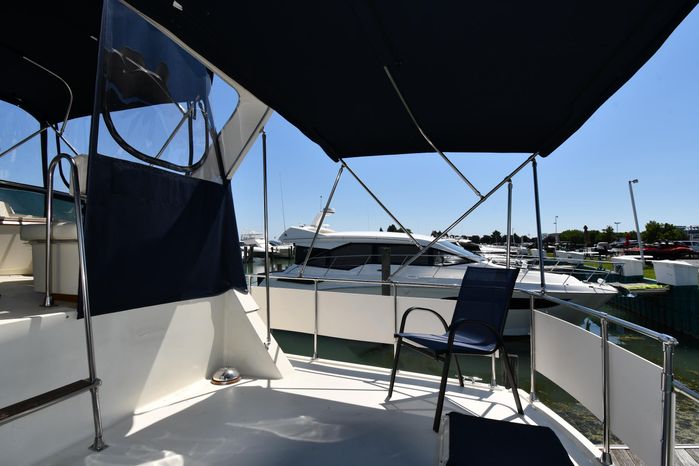 Freshwater / Great Lakes boat since new this vessel features Twin Crusader 454-cid 350-hp Gas Engine's with only 700 original hours. Notable features include but are not limited to the following: Air-Conditioning & Heat (2-Units), (2) Heads (Electric-Flush; Note Stall-Shower in Aft / Master Head), Westerbeke 6.5-kw Generator, NEW Custom Canvas Package (Convertible-Top w/Full Isin-Glass Enclosure on Fly-Bridge, Aft-Deck Convertible-Top, NEW Garmin 741XS (Color / TouchScreen) GPS/Chartplotter, and MUCH more!