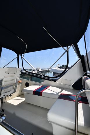 Freshwater / Great Lakes boat since new this vessel features Twin Crusader 454-cid 350-hp Gas Engine's with only 700 original hours. Notable features include but are not limited to the following: Air-Conditioning & Heat (2-Units), (2) Heads (Electric-Flush; Note Stall-Shower in Aft / Master Head), Westerbeke 6.5-kw Generator, NEW Custom Canvas Package (Convertible-Top w/Full Isin-Glass Enclosure on Fly-Bridge, Aft-Deck Convertible-Top, NEW Garmin 741XS (Color / TouchScreen) GPS/Chartplotter, and MUCH more!