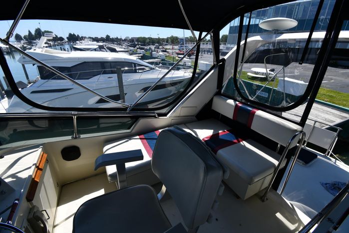 Freshwater / Great Lakes boat since new this vessel features Twin Crusader 454-cid 350-hp Gas Engine's with only 700 original hours. Notable features include but are not limited to the following: Air-Conditioning & Heat (2-Units), (2) Heads (Electric-Flush; Note Stall-Shower in Aft / Master Head), Westerbeke 6.5-kw Generator, NEW Custom Canvas Package (Convertible-Top w/Full Isin-Glass Enclosure on Fly-Bridge, Aft-Deck Convertible-Top, NEW Garmin 741XS (Color / TouchScreen) GPS/Chartplotter, and MUCH more!