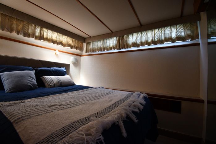 Freshwater / Great Lakes boat since new this vessel features Twin Crusader 454-cid 350-hp Gas Engine's with only 700 original hours. Notable features include but are not limited to the following: Air-Conditioning & Heat (2-Units), (2) Heads (Electric-Flush; Note Stall-Shower in Aft / Master Head), Westerbeke 6.5-kw Generator, NEW Custom Canvas Package (Convertible-Top w/Full Isin-Glass Enclosure on Fly-Bridge, Aft-Deck Convertible-Top, NEW Garmin 741XS (Color / TouchScreen) GPS/Chartplotter, and MUCH more!