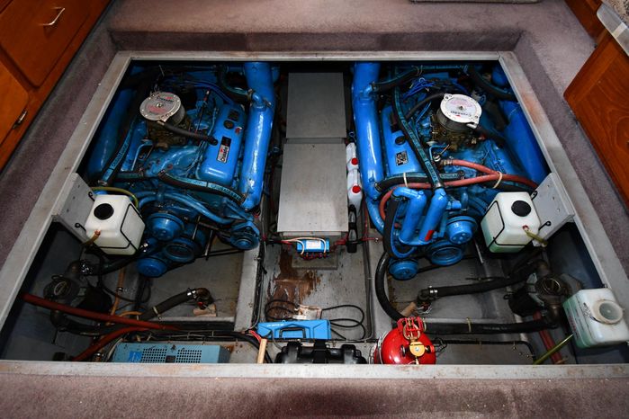 Freshwater / Great Lakes boat since new this vessel features Twin Crusader 454-cid 350-hp Gas Engine's with only 700 original hours. Notable features include but are not limited to the following: Air-Conditioning & Heat (2-Units), (2) Heads (Electric-Flush; Note Stall-Shower in Aft / Master Head), Westerbeke 6.5-kw Generator, NEW Custom Canvas Package (Convertible-Top w/Full Isin-Glass Enclosure on Fly-Bridge, Aft-Deck Convertible-Top, NEW Garmin 741XS (Color / TouchScreen) GPS/Chartplotter, and MUCH more!