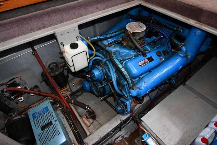 Freshwater / Great Lakes boat since new this vessel features Twin Crusader 454-cid 350-hp Gas Engine's with only 700 original hours. Notable features include but are not limited to the following: Air-Conditioning & Heat (2-Units), (2) Heads (Electric-Flush; Note Stall-Shower in Aft / Master Head), Westerbeke 6.5-kw Generator, NEW Custom Canvas Package (Convertible-Top w/Full Isin-Glass Enclosure on Fly-Bridge, Aft-Deck Convertible-Top, NEW Garmin 741XS (Color / TouchScreen) GPS/Chartplotter, and MUCH more!