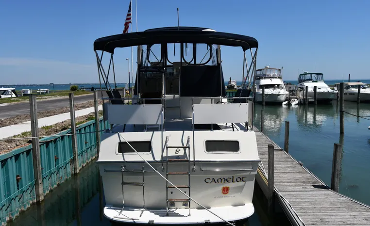 Freshwater / Great Lakes boat since new this vessel features Twin Crusader 454-cid 350-hp Gas Engine's with only 700 original hours. Notable features include but are not limited to the following: Air-Conditioning & Heat (2-Units), (2) Heads (Electric-Flush; Note Stall-Shower in Aft / Master Head), Westerbeke 6.5-kw Generator, NEW Custom Canvas Package (Convertible-Top w/Full Isin-Glass Enclosure on Fly-Bridge, Aft-Deck Convertible-Top, NEW Garmin 741XS (Color / TouchScreen) GPS/Chartplotter, and MUCH more!