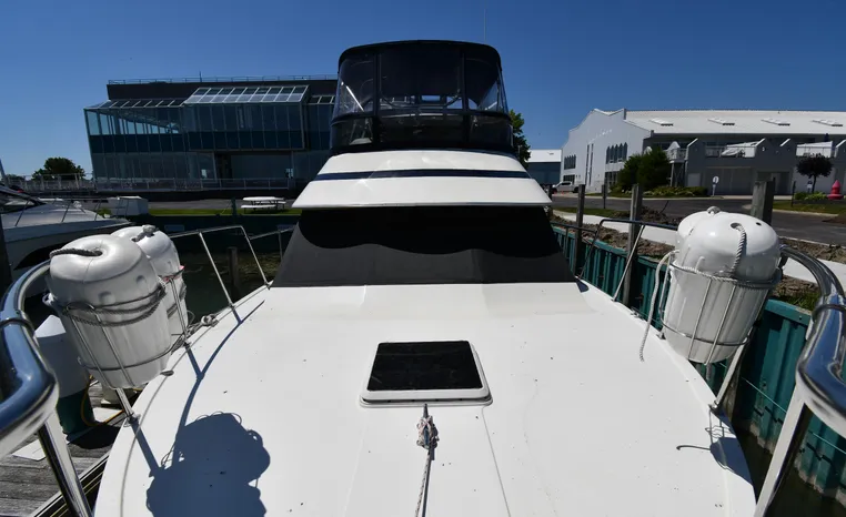Freshwater / Great Lakes boat since new this vessel features Twin Crusader 454-cid 350-hp Gas Engine's with only 700 original hours. Notable features include but are not limited to the following: Air-Conditioning & Heat (2-Units), (2) Heads (Electric-Flush; Note Stall-Shower in Aft / Master Head), Westerbeke 6.5-kw Generator, NEW Custom Canvas Package (Convertible-Top w/Full Isin-Glass Enclosure on Fly-Bridge, Aft-Deck Convertible-Top, NEW Garmin 741XS (Color / TouchScreen) GPS/Chartplotter, and MUCH more!