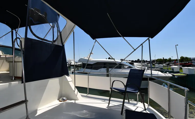 Freshwater / Great Lakes boat since new this vessel features Twin Crusader 454-cid 350-hp Gas Engine's with only 700 original hours. Notable features include but are not limited to the following: Air-Conditioning & Heat (2-Units), (2) Heads (Electric-Flush; Note Stall-Shower in Aft / Master Head), Westerbeke 6.5-kw Generator, NEW Custom Canvas Package (Convertible-Top w/Full Isin-Glass Enclosure on Fly-Bridge, Aft-Deck Convertible-Top, NEW Garmin 741XS (Color / TouchScreen) GPS/Chartplotter, and MUCH more!