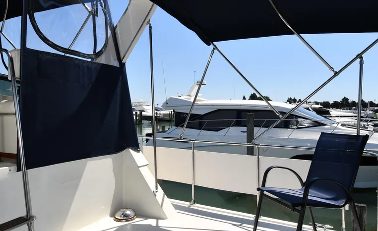 Freshwater / Great Lakes boat since new this vessel features Twin Crusader 454-cid 350-hp Gas Engine's with only 700 original hours. Notable features include but are not limited to the following: Air-Conditioning & Heat (2-Units), (2) Heads (Electric-Flush; Note Stall-Shower in Aft / Master Head), Westerbeke 6.5-kw Generator, NEW Custom Canvas Package (Convertible-Top w/Full Isin-Glass Enclosure on Fly-Bridge, Aft-Deck Convertible-Top, NEW Garmin 741XS (Color / TouchScreen) GPS/Chartplotter, and MUCH more!