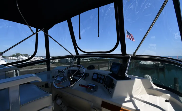 Freshwater / Great Lakes boat since new this vessel features Twin Crusader 454-cid 350-hp Gas Engine's with only 700 original hours. Notable features include but are not limited to the following: Air-Conditioning & Heat (2-Units), (2) Heads (Electric-Flush; Note Stall-Shower in Aft / Master Head), Westerbeke 6.5-kw Generator, NEW Custom Canvas Package (Convertible-Top w/Full Isin-Glass Enclosure on Fly-Bridge, Aft-Deck Convertible-Top, NEW Garmin 741XS (Color / TouchScreen) GPS/Chartplotter, and MUCH more!