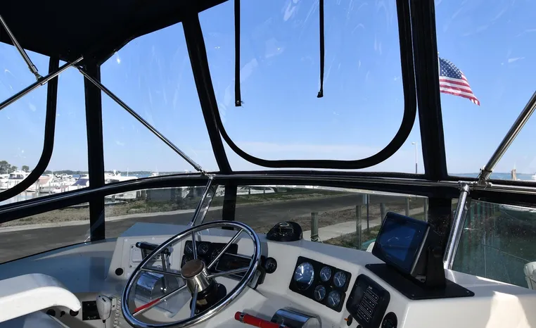 Freshwater / Great Lakes boat since new this vessel features Twin Crusader 454-cid 350-hp Gas Engine's with only 700 original hours. Notable features include but are not limited to the following: Air-Conditioning & Heat (2-Units), (2) Heads (Electric-Flush; Note Stall-Shower in Aft / Master Head), Westerbeke 6.5-kw Generator, NEW Custom Canvas Package (Convertible-Top w/Full Isin-Glass Enclosure on Fly-Bridge, Aft-Deck Convertible-Top, NEW Garmin 741XS (Color / TouchScreen) GPS/Chartplotter, and MUCH more!