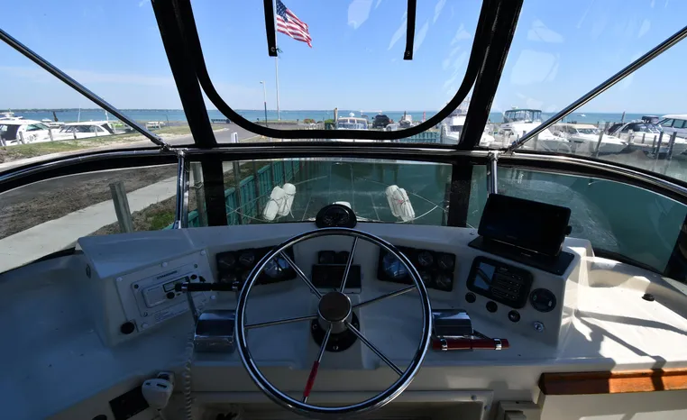 Freshwater / Great Lakes boat since new this vessel features Twin Crusader 454-cid 350-hp Gas Engine's with only 700 original hours. Notable features include but are not limited to the following: Air-Conditioning & Heat (2-Units), (2) Heads (Electric-Flush; Note Stall-Shower in Aft / Master Head), Westerbeke 6.5-kw Generator, NEW Custom Canvas Package (Convertible-Top w/Full Isin-Glass Enclosure on Fly-Bridge, Aft-Deck Convertible-Top, NEW Garmin 741XS (Color / TouchScreen) GPS/Chartplotter, and MUCH more!