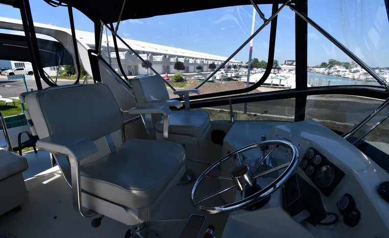 Freshwater / Great Lakes boat since new this vessel features Twin Crusader 454-cid 350-hp Gas Engine's with only 700 original hours. Notable features include but are not limited to the following: Air-Conditioning & Heat (2-Units), (2) Heads (Electric-Flush; Note Stall-Shower in Aft / Master Head), Westerbeke 6.5-kw Generator, NEW Custom Canvas Package (Convertible-Top w/Full Isin-Glass Enclosure on Fly-Bridge, Aft-Deck Convertible-Top, NEW Garmin 741XS (Color / TouchScreen) GPS/Chartplotter, and MUCH more!