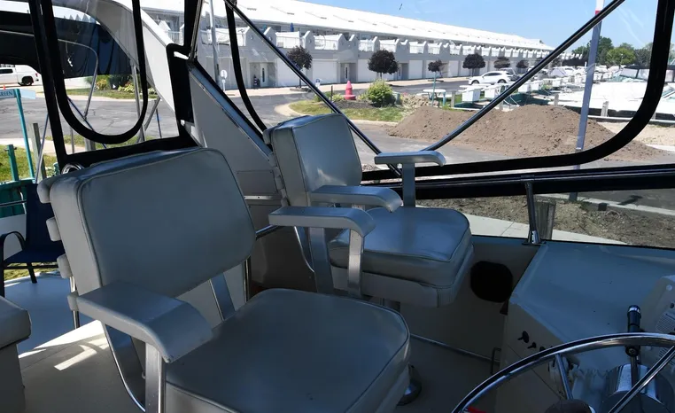 Freshwater / Great Lakes boat since new this vessel features Twin Crusader 454-cid 350-hp Gas Engine's with only 700 original hours. Notable features include but are not limited to the following: Air-Conditioning & Heat (2-Units), (2) Heads (Electric-Flush; Note Stall-Shower in Aft / Master Head), Westerbeke 6.5-kw Generator, NEW Custom Canvas Package (Convertible-Top w/Full Isin-Glass Enclosure on Fly-Bridge, Aft-Deck Convertible-Top, NEW Garmin 741XS (Color / TouchScreen) GPS/Chartplotter, and MUCH more!