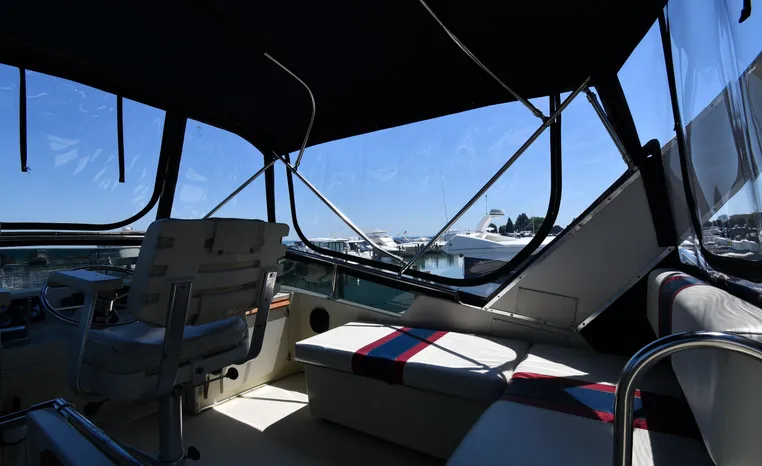 Freshwater / Great Lakes boat since new this vessel features Twin Crusader 454-cid 350-hp Gas Engine's with only 700 original hours. Notable features include but are not limited to the following: Air-Conditioning & Heat (2-Units), (2) Heads (Electric-Flush; Note Stall-Shower in Aft / Master Head), Westerbeke 6.5-kw Generator, NEW Custom Canvas Package (Convertible-Top w/Full Isin-Glass Enclosure on Fly-Bridge, Aft-Deck Convertible-Top, NEW Garmin 741XS (Color / TouchScreen) GPS/Chartplotter, and MUCH more!
