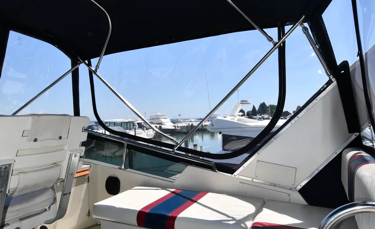 Freshwater / Great Lakes boat since new this vessel features Twin Crusader 454-cid 350-hp Gas Engine's with only 700 original hours. Notable features include but are not limited to the following: Air-Conditioning & Heat (2-Units), (2) Heads (Electric-Flush; Note Stall-Shower in Aft / Master Head), Westerbeke 6.5-kw Generator, NEW Custom Canvas Package (Convertible-Top w/Full Isin-Glass Enclosure on Fly-Bridge, Aft-Deck Convertible-Top, NEW Garmin 741XS (Color / TouchScreen) GPS/Chartplotter, and MUCH more!