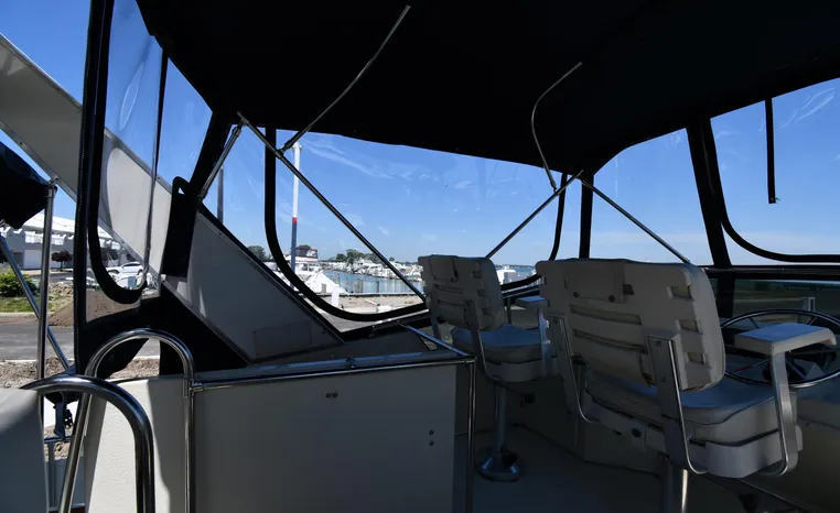 Freshwater / Great Lakes boat since new this vessel features Twin Crusader 454-cid 350-hp Gas Engine's with only 700 original hours. Notable features include but are not limited to the following: Air-Conditioning & Heat (2-Units), (2) Heads (Electric-Flush; Note Stall-Shower in Aft / Master Head), Westerbeke 6.5-kw Generator, NEW Custom Canvas Package (Convertible-Top w/Full Isin-Glass Enclosure on Fly-Bridge, Aft-Deck Convertible-Top, NEW Garmin 741XS (Color / TouchScreen) GPS/Chartplotter, and MUCH more!