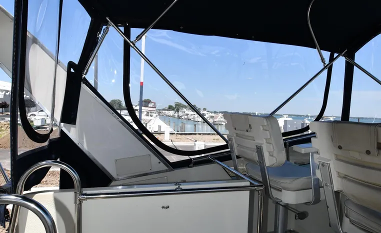 Freshwater / Great Lakes boat since new this vessel features Twin Crusader 454-cid 350-hp Gas Engine's with only 700 original hours. Notable features include but are not limited to the following: Air-Conditioning & Heat (2-Units), (2) Heads (Electric-Flush; Note Stall-Shower in Aft / Master Head), Westerbeke 6.5-kw Generator, NEW Custom Canvas Package (Convertible-Top w/Full Isin-Glass Enclosure on Fly-Bridge, Aft-Deck Convertible-Top, NEW Garmin 741XS (Color / TouchScreen) GPS/Chartplotter, and MUCH more!