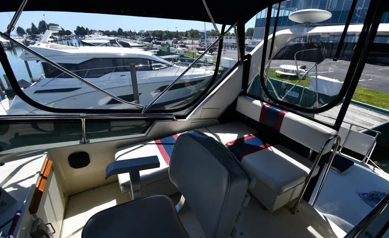 Freshwater / Great Lakes boat since new this vessel features Twin Crusader 454-cid 350-hp Gas Engine's with only 700 original hours. Notable features include but are not limited to the following: Air-Conditioning & Heat (2-Units), (2) Heads (Electric-Flush; Note Stall-Shower in Aft / Master Head), Westerbeke 6.5-kw Generator, NEW Custom Canvas Package (Convertible-Top w/Full Isin-Glass Enclosure on Fly-Bridge, Aft-Deck Convertible-Top, NEW Garmin 741XS (Color / TouchScreen) GPS/Chartplotter, and MUCH more!
