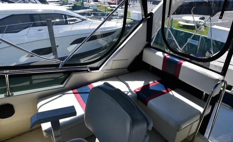 Freshwater / Great Lakes boat since new this vessel features Twin Crusader 454-cid 350-hp Gas Engine's with only 700 original hours. Notable features include but are not limited to the following: Air-Conditioning & Heat (2-Units), (2) Heads (Electric-Flush; Note Stall-Shower in Aft / Master Head), Westerbeke 6.5-kw Generator, NEW Custom Canvas Package (Convertible-Top w/Full Isin-Glass Enclosure on Fly-Bridge, Aft-Deck Convertible-Top, NEW Garmin 741XS (Color / TouchScreen) GPS/Chartplotter, and MUCH more!