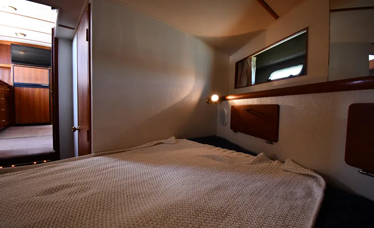 Freshwater / Great Lakes boat since new this vessel features Twin Crusader 454-cid 350-hp Gas Engine's with only 700 original hours. Notable features include but are not limited to the following: Air-Conditioning & Heat (2-Units), (2) Heads (Electric-Flush; Note Stall-Shower in Aft / Master Head), Westerbeke 6.5-kw Generator, NEW Custom Canvas Package (Convertible-Top w/Full Isin-Glass Enclosure on Fly-Bridge, Aft-Deck Convertible-Top, NEW Garmin 741XS (Color / TouchScreen) GPS/Chartplotter, and MUCH more!