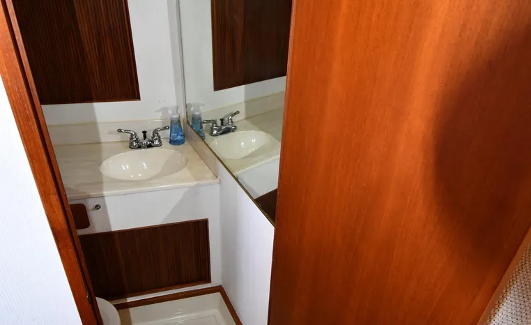 Freshwater / Great Lakes boat since new this vessel features Twin Crusader 454-cid 350-hp Gas Engine's with only 700 original hours. Notable features include but are not limited to the following: Air-Conditioning & Heat (2-Units), (2) Heads (Electric-Flush; Note Stall-Shower in Aft / Master Head), Westerbeke 6.5-kw Generator, NEW Custom Canvas Package (Convertible-Top w/Full Isin-Glass Enclosure on Fly-Bridge, Aft-Deck Convertible-Top, NEW Garmin 741XS (Color / TouchScreen) GPS/Chartplotter, and MUCH more!