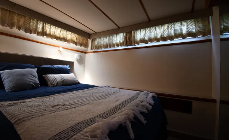 Freshwater / Great Lakes boat since new this vessel features Twin Crusader 454-cid 350-hp Gas Engine's with only 700 original hours. Notable features include but are not limited to the following: Air-Conditioning & Heat (2-Units), (2) Heads (Electric-Flush; Note Stall-Shower in Aft / Master Head), Westerbeke 6.5-kw Generator, NEW Custom Canvas Package (Convertible-Top w/Full Isin-Glass Enclosure on Fly-Bridge, Aft-Deck Convertible-Top, NEW Garmin 741XS (Color / TouchScreen) GPS/Chartplotter, and MUCH more!