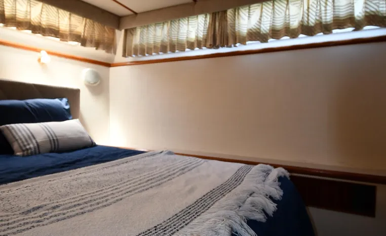 Freshwater / Great Lakes boat since new this vessel features Twin Crusader 454-cid 350-hp Gas Engine's with only 700 original hours. Notable features include but are not limited to the following: Air-Conditioning & Heat (2-Units), (2) Heads (Electric-Flush; Note Stall-Shower in Aft / Master Head), Westerbeke 6.5-kw Generator, NEW Custom Canvas Package (Convertible-Top w/Full Isin-Glass Enclosure on Fly-Bridge, Aft-Deck Convertible-Top, NEW Garmin 741XS (Color / TouchScreen) GPS/Chartplotter, and MUCH more!