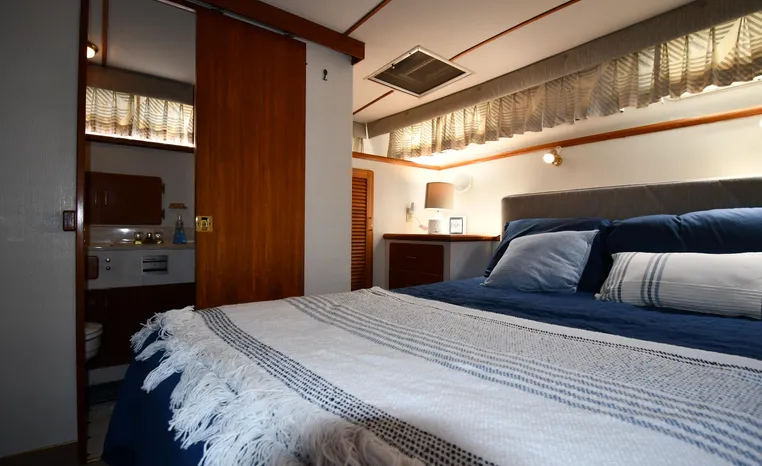 Freshwater / Great Lakes boat since new this vessel features Twin Crusader 454-cid 350-hp Gas Engine's with only 700 original hours. Notable features include but are not limited to the following: Air-Conditioning & Heat (2-Units), (2) Heads (Electric-Flush; Note Stall-Shower in Aft / Master Head), Westerbeke 6.5-kw Generator, NEW Custom Canvas Package (Convertible-Top w/Full Isin-Glass Enclosure on Fly-Bridge, Aft-Deck Convertible-Top, NEW Garmin 741XS (Color / TouchScreen) GPS/Chartplotter, and MUCH more!