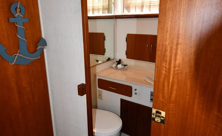 Freshwater / Great Lakes boat since new this vessel features Twin Crusader 454-cid 350-hp Gas Engine's with only 700 original hours. Notable features include but are not limited to the following: Air-Conditioning & Heat (2-Units), (2) Heads (Electric-Flush; Note Stall-Shower in Aft / Master Head), Westerbeke 6.5-kw Generator, NEW Custom Canvas Package (Convertible-Top w/Full Isin-Glass Enclosure on Fly-Bridge, Aft-Deck Convertible-Top, NEW Garmin 741XS (Color / TouchScreen) GPS/Chartplotter, and MUCH more!