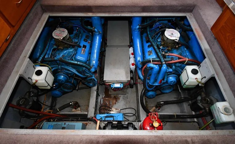 Freshwater / Great Lakes boat since new this vessel features Twin Crusader 454-cid 350-hp Gas Engine's with only 700 original hours. Notable features include but are not limited to the following: Air-Conditioning & Heat (2-Units), (2) Heads (Electric-Flush; Note Stall-Shower in Aft / Master Head), Westerbeke 6.5-kw Generator, NEW Custom Canvas Package (Convertible-Top w/Full Isin-Glass Enclosure on Fly-Bridge, Aft-Deck Convertible-Top, NEW Garmin 741XS (Color / TouchScreen) GPS/Chartplotter, and MUCH more!