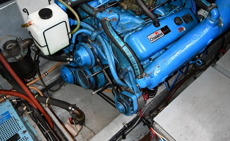 Freshwater / Great Lakes boat since new this vessel features Twin Crusader 454-cid 350-hp Gas Engine's with only 700 original hours. Notable features include but are not limited to the following: Air-Conditioning & Heat (2-Units), (2) Heads (Electric-Flush; Note Stall-Shower in Aft / Master Head), Westerbeke 6.5-kw Generator, NEW Custom Canvas Package (Convertible-Top w/Full Isin-Glass Enclosure on Fly-Bridge, Aft-Deck Convertible-Top, NEW Garmin 741XS (Color / TouchScreen) GPS/Chartplotter, and MUCH more!