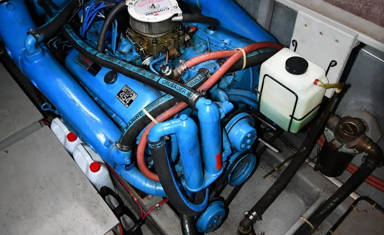 Freshwater / Great Lakes boat since new this vessel features Twin Crusader 454-cid 350-hp Gas Engine's with only 700 original hours. Notable features include but are not limited to the following: Air-Conditioning & Heat (2-Units), (2) Heads (Electric-Flush; Note Stall-Shower in Aft / Master Head), Westerbeke 6.5-kw Generator, NEW Custom Canvas Package (Convertible-Top w/Full Isin-Glass Enclosure on Fly-Bridge, Aft-Deck Convertible-Top, NEW Garmin 741XS (Color / TouchScreen) GPS/Chartplotter, and MUCH more!