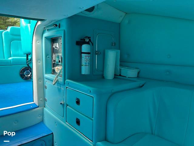 The boat has a full cabin and was sent to Apache in 2010. It was completely resigned, lightened, and set up for number 6 drives. Also, a step was added to the bottom, the same step used on the cigarette models by Chris Merrill, who builds race boats.