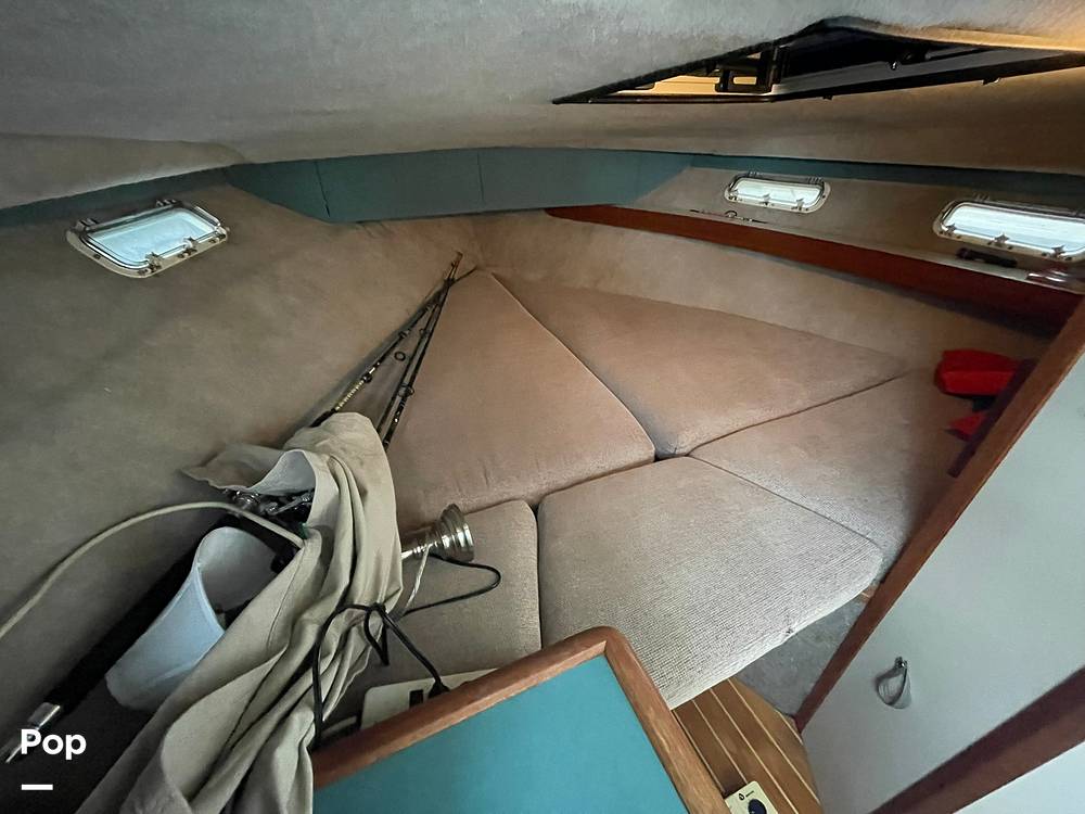 Designed for comfortable cruising and fishing. This boat offers a spacious cabin with good sized seating, a functional galley, and a V-berth for overnight stays. Large windows provide natural light and good visibility from the helm.