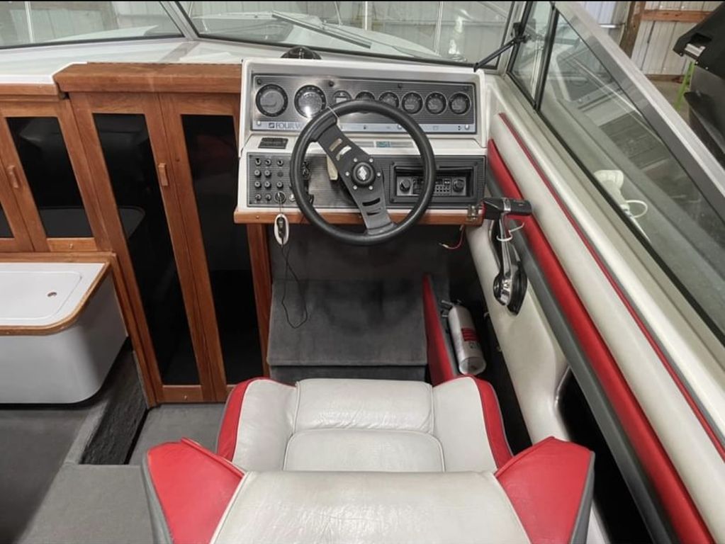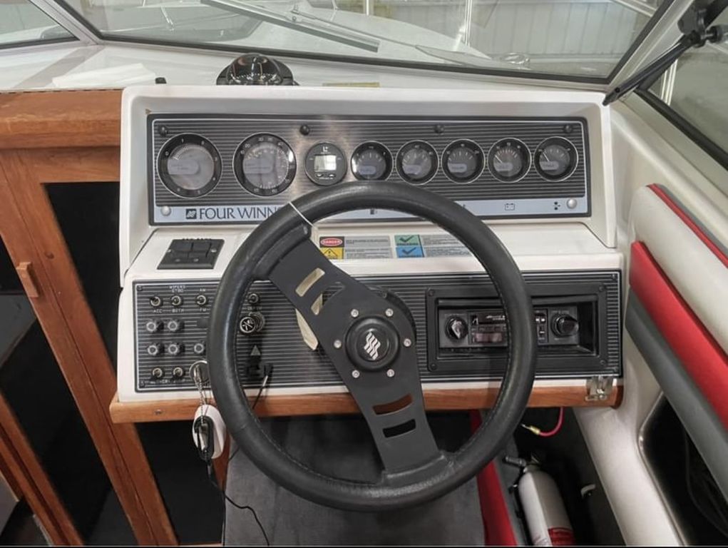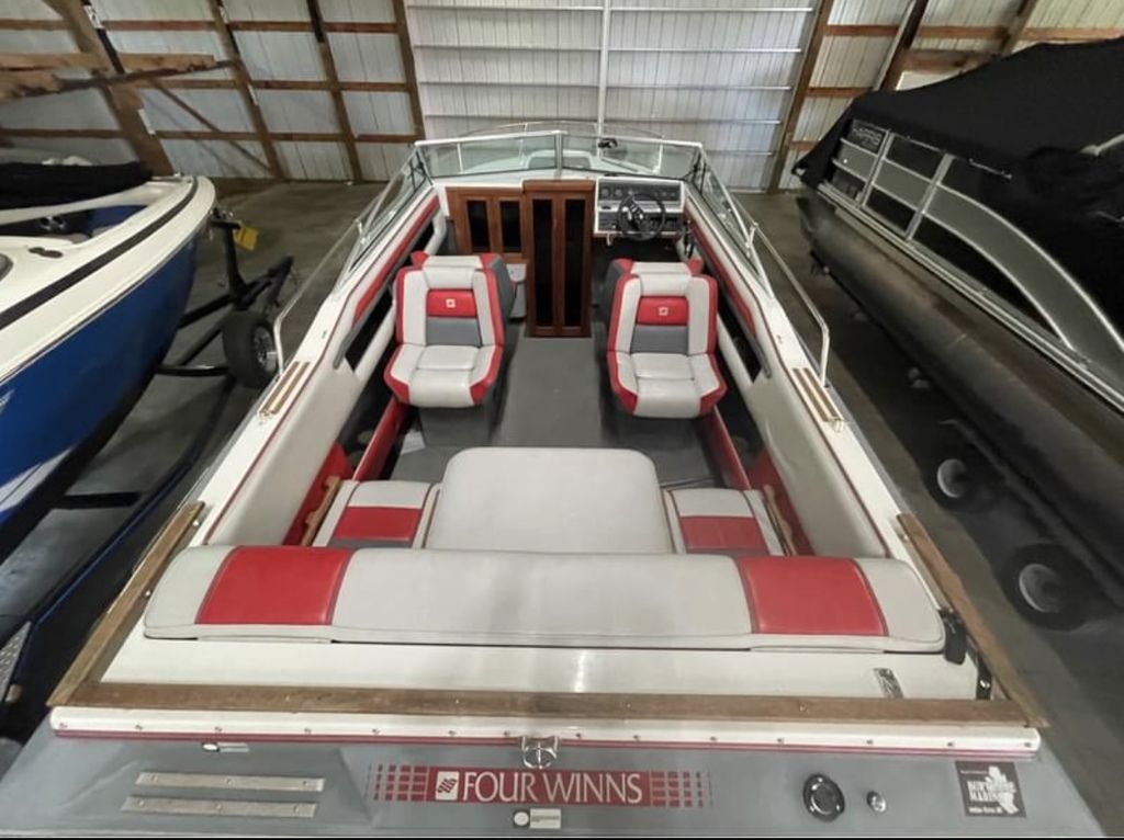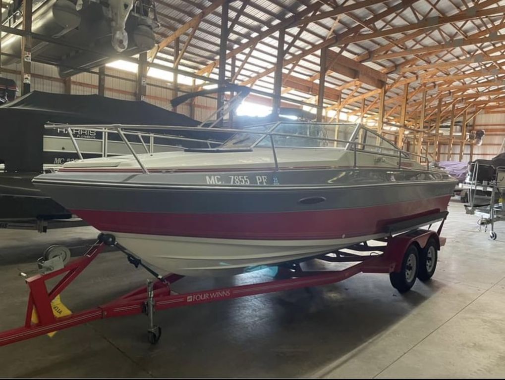 1989 Four Winns 215 Sundowner This 1989 Four Winns 215 Sundowner is a well-preserved classic cuddy cabin cruiser, powered by a 5.7L Cobra OMC I/O engine. The interior of this boat is in phenomenal condition, showcasing its meticulous upkeep over the years. It comes complete with a full cover to protect it from the elements and includes a tandem axle trailer for easy transportation. Key Features:Interior: Exceptionally well-maintained with all original features intact.Cover: Comes with a full cover to keep the boat protected.Transom: Checked the Transom with a moisture meter and it’s dry.Trailer: Includes a tandem axle trailer, making it easy to haul. Needs Attention:Fuel Pump: The boat requires a new fuel pump.Trim: The trim works as it should going up and down, but it does not hold its position when trimmed up. We are currently holding it up with a ratchet strap for storage and transport. This boat is being sold as is, offering a great opportunity for someone willing to put in a little work to restore it to its full potential. Don't miss out on this chance to own a classic Four Winns cruiser!Gull Lake Marine is West Michigan’s trusted marine dealership. We have over 100 years experience of providing fun on the water. Every boat purchase includes Free delivery within 15 miles, a thorough on-water orientation by our trained delivery captain, and guaranteed service after the sale. Contact our Sales Department today at (800)252-3388 for more details. Not finding what you’re looking for? You can view our entire inventory at GullLakeMarine.com or call us directly.