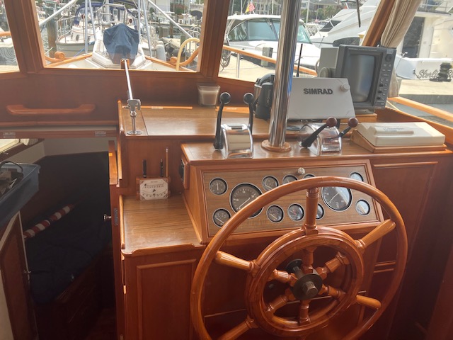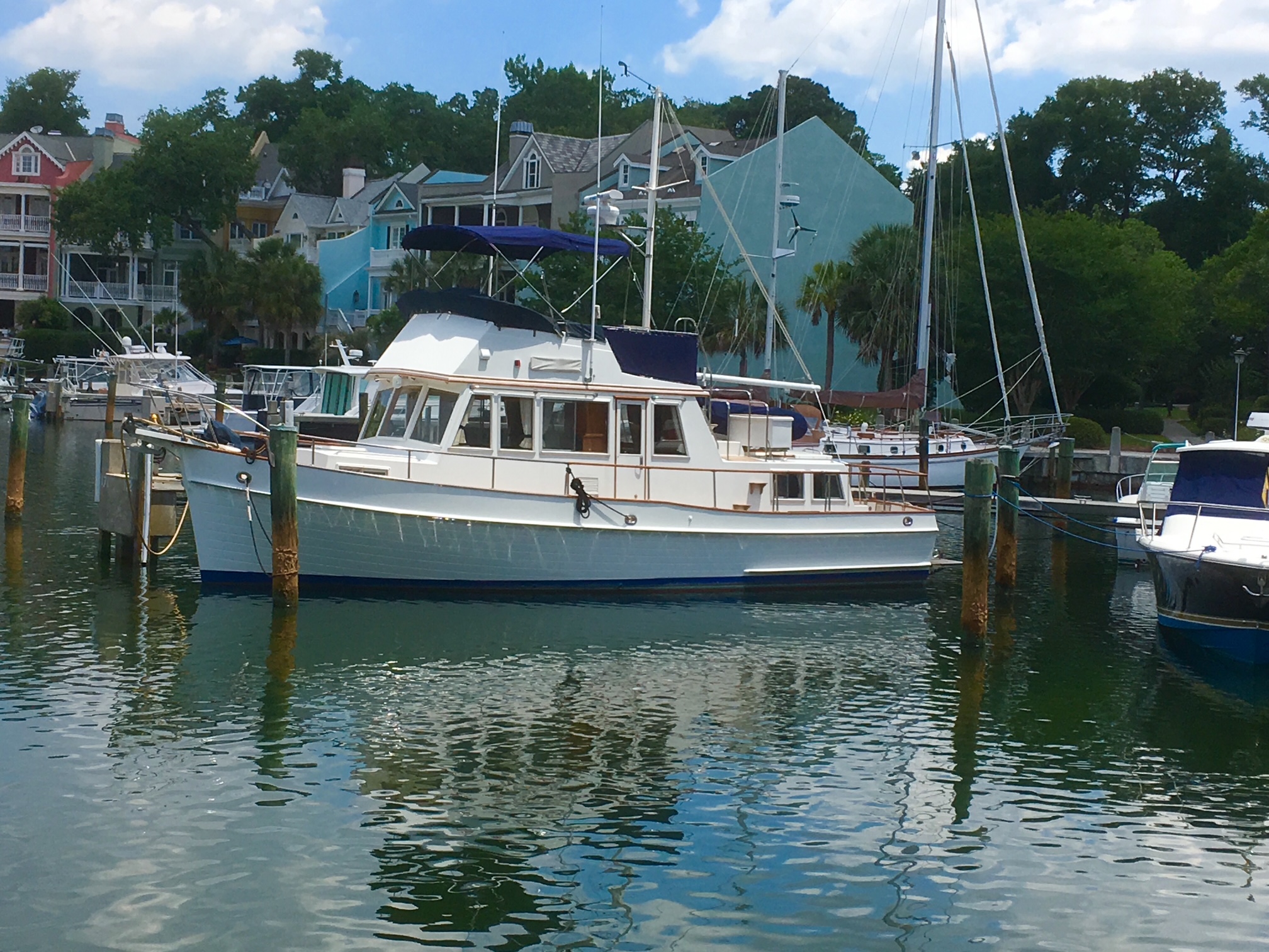 1989 Grand Banks 36 Classic - Hull #874. Well maintained and located in Hilton Head, SC. Two cabins and two heads with a walk-around full size bed in the aft cabin and twin berths in the forward cabin. Air conditioners (3) for each cabin and salon. Twin Cumming 6BT5.9 210 HP engines with 2,425 hours. Westerbeak 8 kw generator with 525 hours. Two 8D AGM main batteries with a 4D AGM generator starting battery. Ten foot 2022 West Marine dinghy with 8 HP Evinrude outboard motor. Asking $139,000.