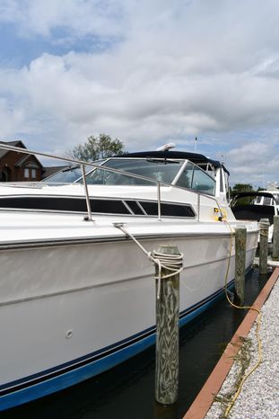 Freshwater / Great Lakes boat since new this vessel features Twin MerCruiser 454-cid 340-hp Gas Inboard Engine's with 1451 original hours. Notable features include but are not limited to the following: Air-Conditioning & Heat (2-Units), Head (Vacuflush) w/Vanity/Sink/Stall-Shower, Central Vacuum, 7.5kw Quicksilver Generator, Windlass Anchor, Canvas Package (Cockpit Mooring Cover, Convertible-Top w/Forward / Side-Windows / Slant-Back Rear), Premium Sound System w/CD-Player, Swim Platform w/Boarding Ladder, and MUCH more!