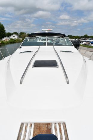 Freshwater / Great Lakes boat since new this vessel features Twin MerCruiser 454-cid 340-hp Gas Inboard Engine's with 1451 original hours. Notable features include but are not limited to the following: Air-Conditioning & Heat (2-Units), Head (Vacuflush) w/Vanity/Sink/Stall-Shower, Central Vacuum, 7.5kw Quicksilver Generator, Windlass Anchor, Canvas Package (Cockpit Mooring Cover, Convertible-Top w/Forward / Side-Windows / Slant-Back Rear), Premium Sound System w/CD-Player, Swim Platform w/Boarding Ladder, and MUCH more!