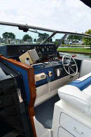 Freshwater / Great Lakes boat since new this vessel features Twin MerCruiser 454-cid 340-hp Gas Inboard Engine's with 1451 original hours. Notable features include but are not limited to the following: Air-Conditioning & Heat (2-Units), Head (Vacuflush) w/Vanity/Sink/Stall-Shower, Central Vacuum, 7.5kw Quicksilver Generator, Windlass Anchor, Canvas Package (Cockpit Mooring Cover, Convertible-Top w/Forward / Side-Windows / Slant-Back Rear), Premium Sound System w/CD-Player, Swim Platform w/Boarding Ladder, and MUCH more!
