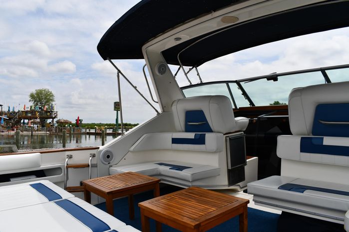 Freshwater / Great Lakes boat since new this vessel features Twin MerCruiser 454-cid 340-hp Gas Inboard Engine's with 1451 original hours. Notable features include but are not limited to the following: Air-Conditioning & Heat (2-Units), Head (Vacuflush) w/Vanity/Sink/Stall-Shower, Central Vacuum, 7.5kw Quicksilver Generator, Windlass Anchor, Canvas Package (Cockpit Mooring Cover, Convertible-Top w/Forward / Side-Windows / Slant-Back Rear), Premium Sound System w/CD-Player, Swim Platform w/Boarding Ladder, and MUCH more!