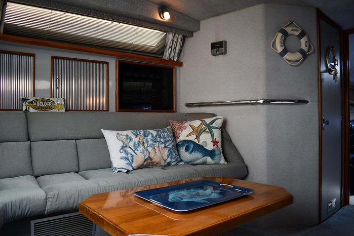 Freshwater / Great Lakes boat since new this vessel features Twin MerCruiser 454-cid 340-hp Gas Inboard Engine's with 1451 original hours. Notable features include but are not limited to the following: Air-Conditioning & Heat (2-Units), Head (Vacuflush) w/Vanity/Sink/Stall-Shower, Central Vacuum, 7.5kw Quicksilver Generator, Windlass Anchor, Canvas Package (Cockpit Mooring Cover, Convertible-Top w/Forward / Side-Windows / Slant-Back Rear), Premium Sound System w/CD-Player, Swim Platform w/Boarding Ladder, and MUCH more!